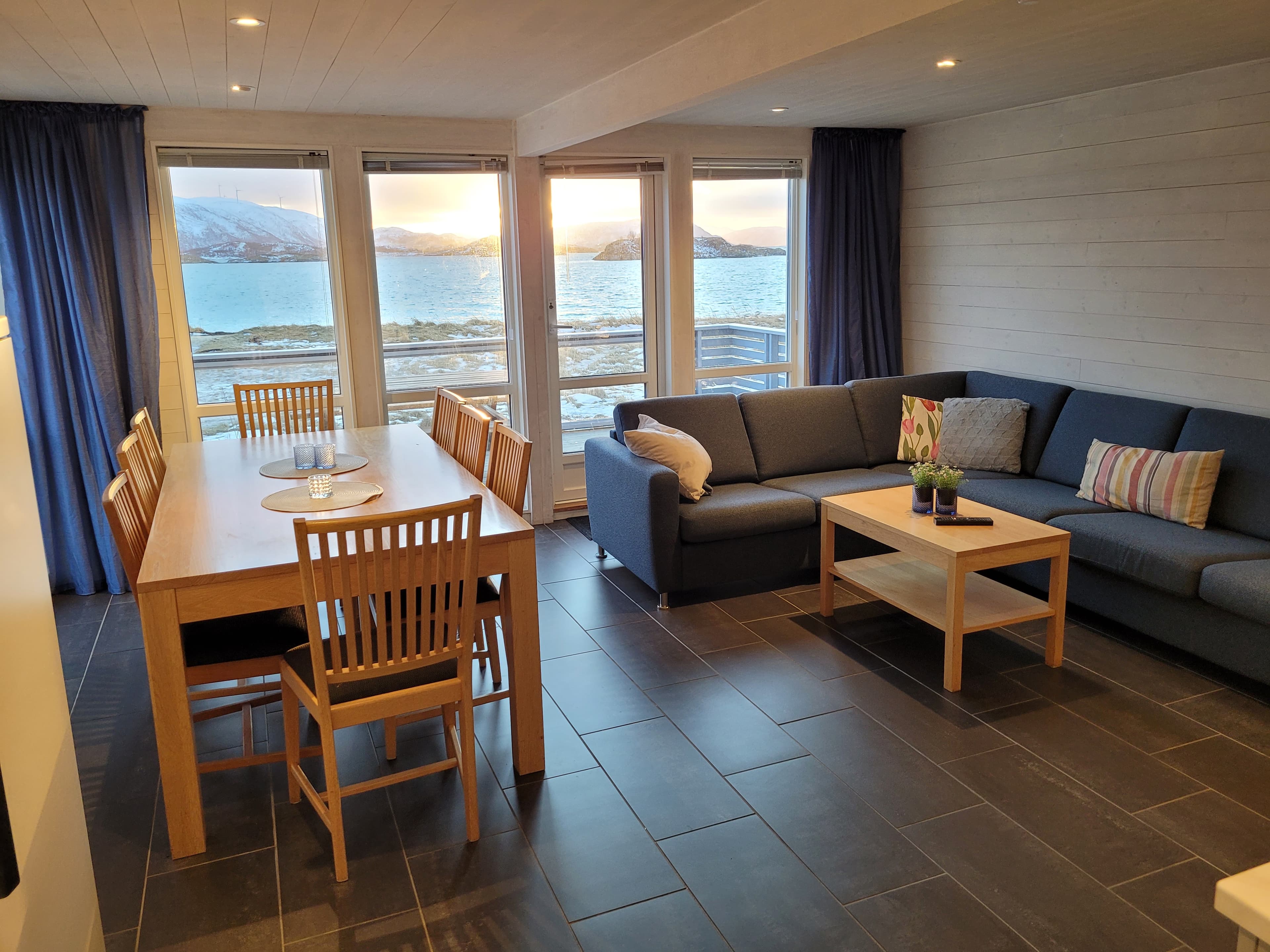 Hytta har 8 sengeplasser fordelt på 3 rom, og er over 2 etasjer. Den har 2 bad, hvor et med badstu. Den ligger idyllisk til like ved stranden. Du kan se hytta/sjøhuset vårt ved å gå inn på linken, sjøhuset vårt er det mørke-grå til venstre for det knall-gule: Sommarøy Arctic Hotel Sjøhus